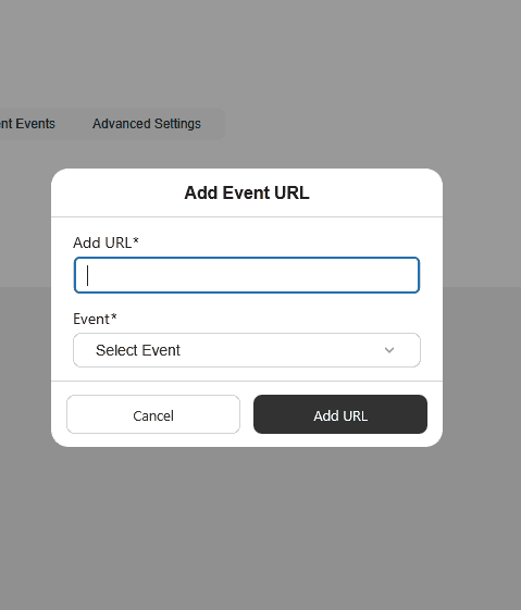 Rnter the full URL of the page you want to assign to a particular event and choose the event from the dropdown list, then press "Add URL"