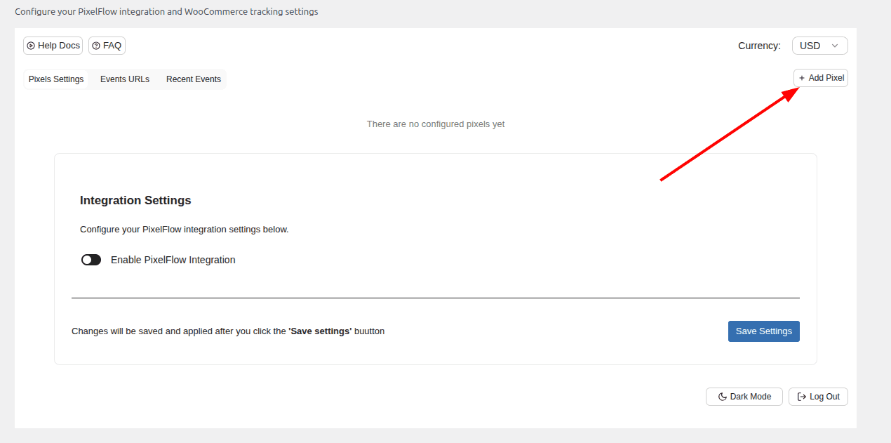 In the PixelFlow dashboard or in your plugin, you can now add your first Pixel.