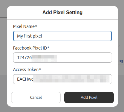 After you filled the details,- click the ‘Add Pixel’ button