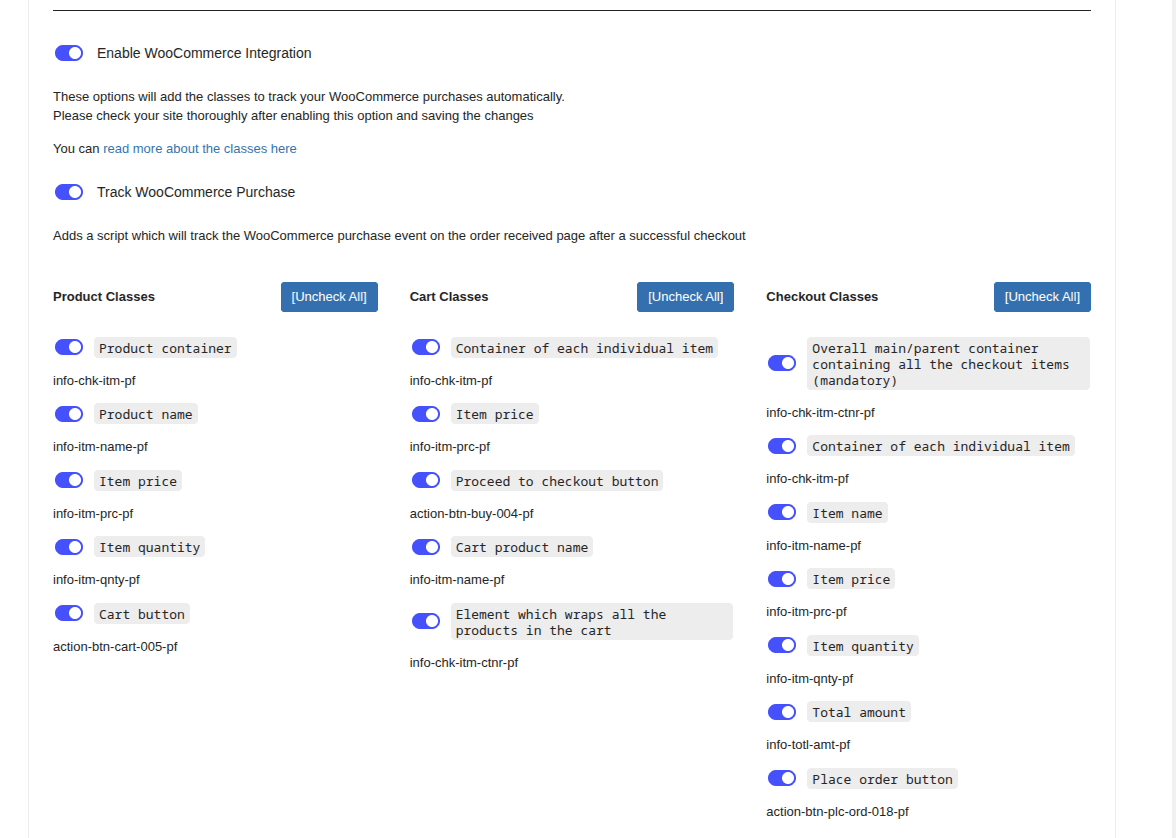 After you turned it on, you should see more options about the Woo Integration