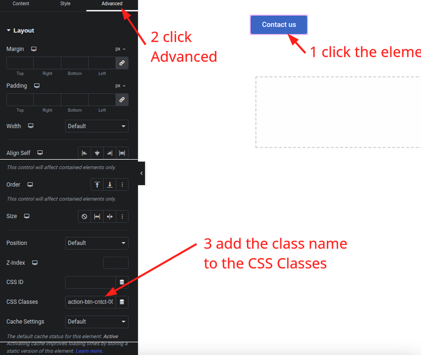 Klicken Sie im Elementor-Editor auf das Element, das Sie tracken möchten