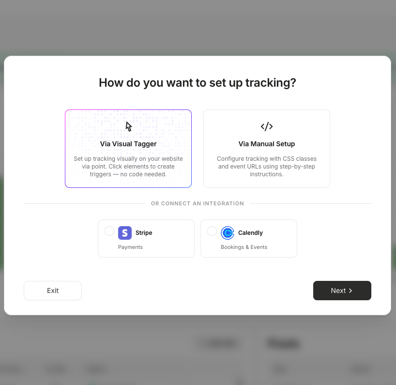 Visual Tagger: Ideal para botones, formularios, popups y otras interacciones en la página. Esta es la opción recomendada para la mayoría de los usuarios.