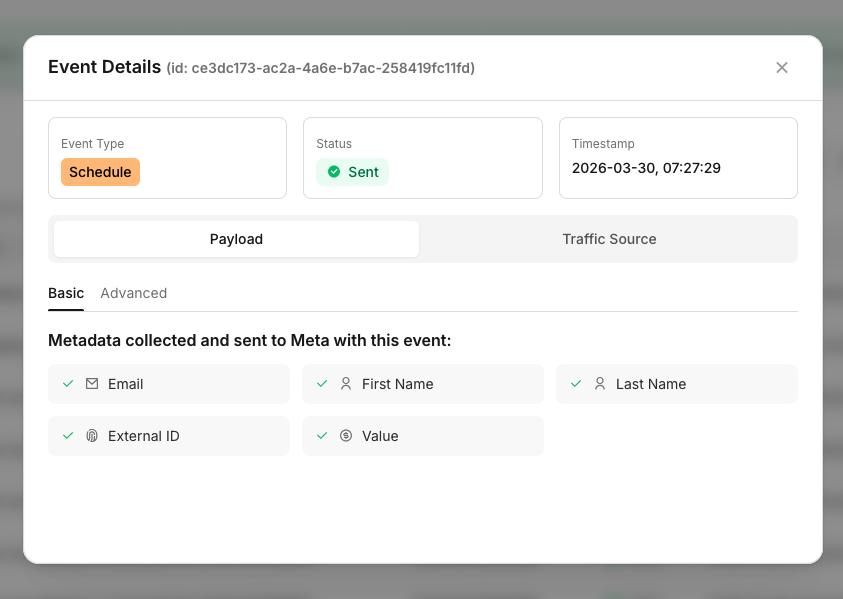 Note: It can take up to 48 hours for new events to appear in Meta Events Manager.