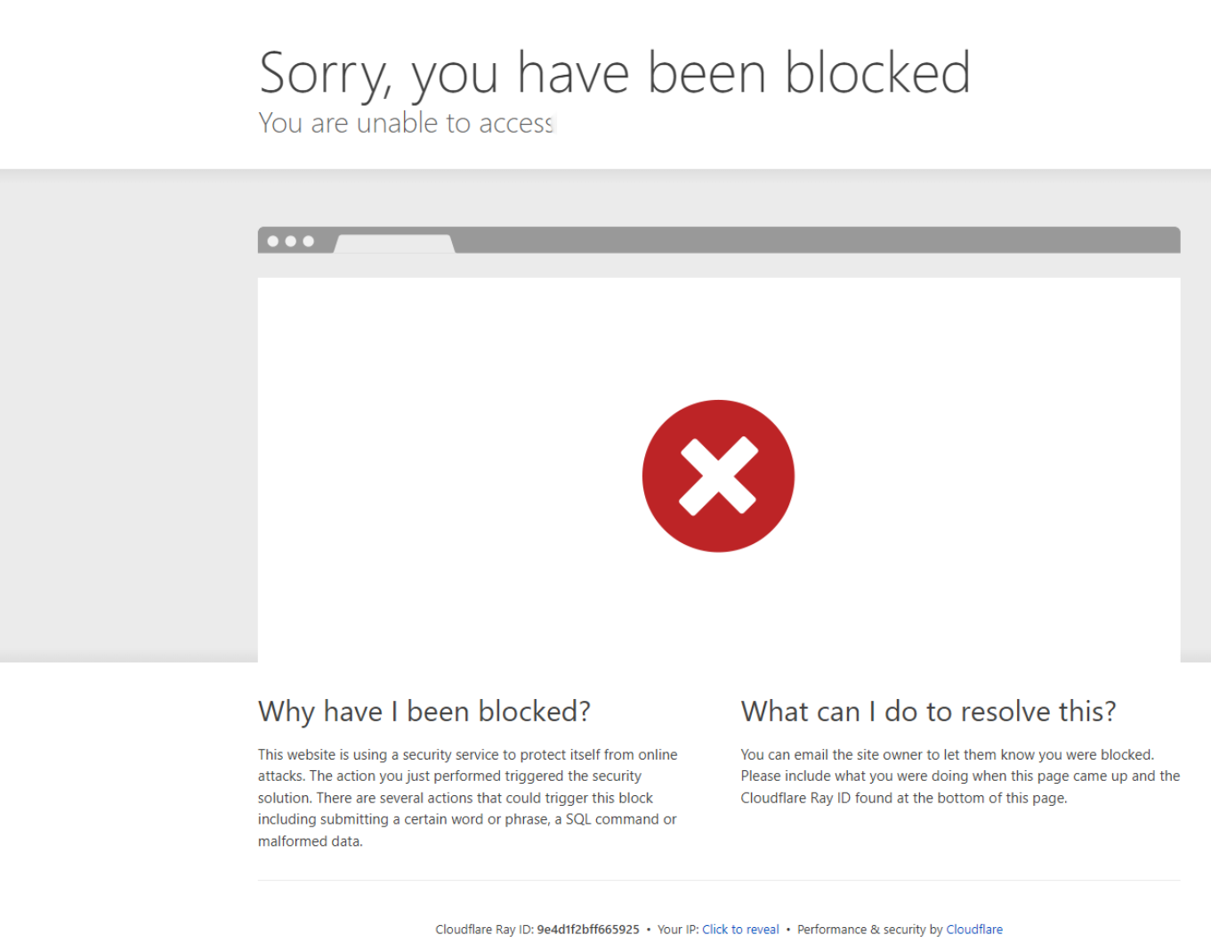 If you're still seeing the block after adding the rule, check the Cloudflare Ray ID shown on the blocked page and contact us at [email protected] with that ID. It will help us identify exactly which rule is triggering the block.