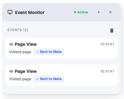 The Realtime Event Monitor is a widget that only you can see on your website. You can click on any element that you've setup events to be triggered on and see the events being triggered in realtime along with any metadata that has been collected.